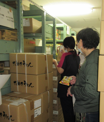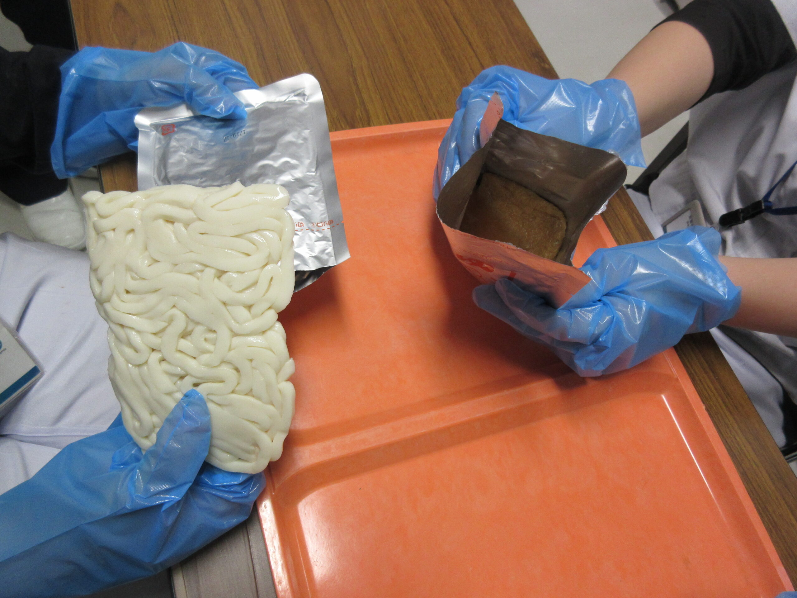 病院全体で実施される防災訓練とは別に、当科では小班に分かれて防災訓練を行っています。災害時における当科の組織図に従って食数班、調理班、備蓄班に各担当を決めて災害時を想定して各人が実際に動けるように訓練しています。